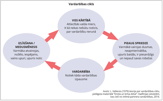 Ļoti svarīgs faktors, ko apzināties mediatoriem, bāriņtiesu, sociālo dienestu darbiniekiem un tiesībsargājošo institūciju profesionāļiem, ir ģimenes sistemātiskajai, kontrolējošai vardarbībai raksturīgais vardarbības cikla spēks un ietekme uz iesaistīto cilvēku uzvedību un lēmumiem. Upuris un varmāka pie mediatora var nonākt "izlīgšanas/medusmēneša fāzē" un pārtraukt kontaktu, pieaugot spriedzes fāzei, vai arī pēc vēršanās pie tiesībsargājošajām iestādēm "vardarbības fāzē" atsaukt iesniegumus un atteikties no atbalsta un papildu aizsardzības, iestājoties "medusmēneša/izlīguma fāzei".